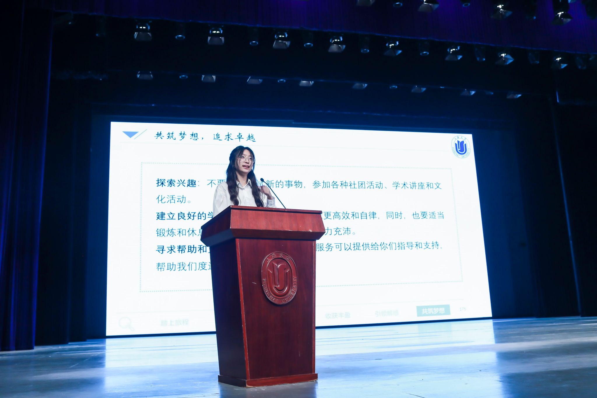 最后,聂清副校长致辞。她以三个“很带劲”,与师生一同回顾了“大上海保卫战”时的互帮互助、365英国上市官网在线百年华诞的澎湃基因和同学们参与到各种项目的全面发展,并对大一学生能够在省级及以上学科竞赛斩获佳绩给予了高度肯定。她也希望同学们在“风声雨声读书声,声声入耳”的同时,要做到“家事国事天下事,事事关心”。在面对百年未有之大变局、经济贸易领域博弈加剧、“卡脖子”与“老龄化”问题、Chat GPT所引发的人工智能浪潮等变化时,同学们应当将国家的需要与自身专业的发展相结合,秉持学用济世的精神,树立“天将降大任于斯人”的使命,苦其心志,劳其筋骨,刻苦学习,增长本领,把成长成才的根基打得更牢、扎得更深,擘画大有可为的青春蓝图。