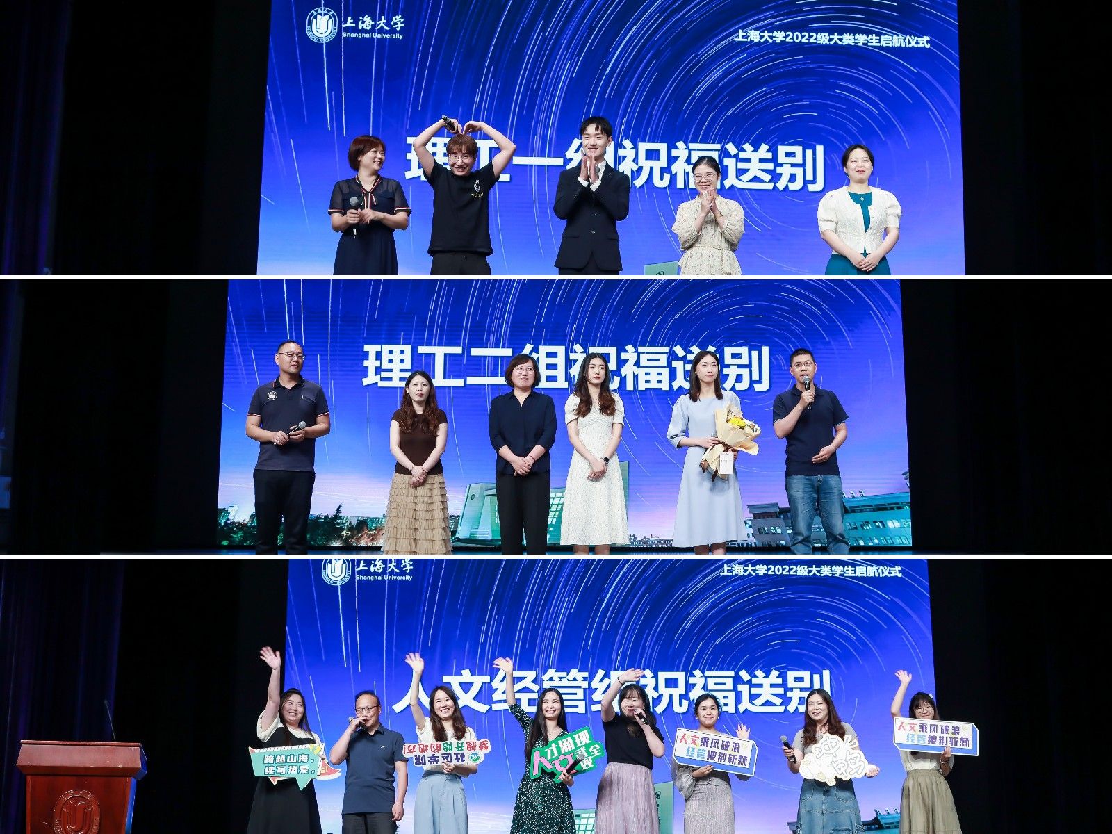 6月25日晚上,365英国上市官网在线2022级大类学生启航仪式在宝山校区伟长楼举行,本次活动还设置了图书馆报告厅、J103和J202等三个分会场。出席此次启航仪式的嘉宾有校党委常委、副校长聂清,校党委常委、宣传部部长胡大伟,教务部常务副部长彭章友,学工办主任、武装部部长、本科生书院管理中心主任孟祥栋,招毕办主任陆瑾,后勤保障部党委书记李坚,信息办主任许华虎,后勤保障部副部长、公寓办主任胡乾源,党委组织人事部组织处副处长张云中,党委教师工作部副部长、本科生书院管理中心副主任孙琦琰,校团委副书记富旭和高顿教育集团上海市场总监孙超、泽稷教育副总裁祁玉娟,以及社区学院导师代表和全体师生参加了本次启航活动。各专业学院的领导、老师和学生代表也专程来到会场迎接2022级同学。本次活动由社区学院辅导员薛卜真、谢玲玲和理学工学Ⅰ类学生邱皓镧、蓝晶晶主持。