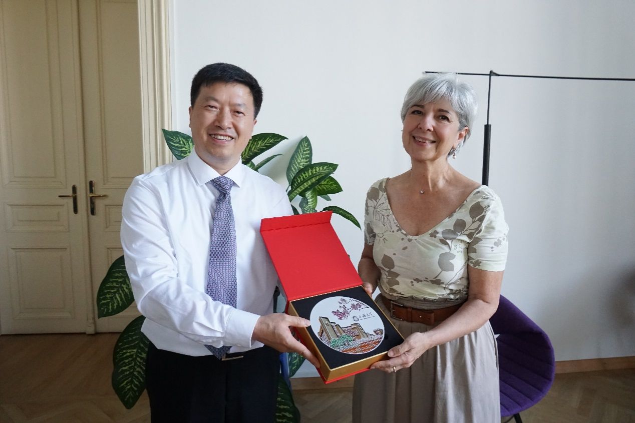 刘校长赠与维也纳副校长ManuelaBaccarini365官网纪念品