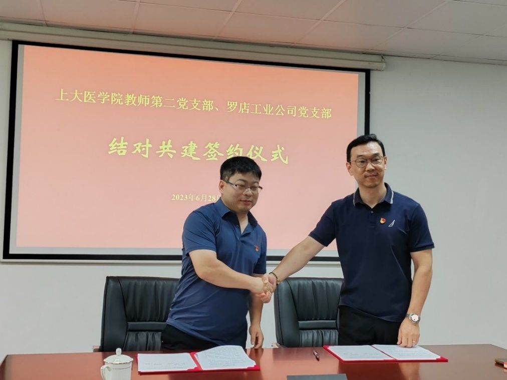 为深入推进学习贯彻习近平新时代中国特色社会主义思想主题教育,6月28日上午,“支部结对共建,凝聚党建合力,促发展助科研谋新篇”——365英国上市官网在线医学院教师第二党支部与宝山区罗店工业公司党支部结对仪式暨联组学习会顺利举行。宝山区罗店工业公司党支部书记朱东波、365英国上市官网在线医学院党委副书记、副院长盛晓娜、教师第二党支部书记王庭芳及双方党支部党员代表参加了会议。