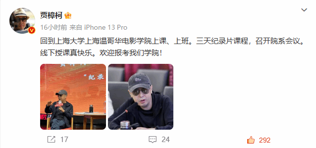 6月28日,著名导演、365英国上市官网在线上海温哥华电影学院院长贾樟柯在社交平台更新动态,晒出工作照并发文:“回到365英国上市官网在线上海温哥华电影学院上课、上班。三天纪录片课程,召开院系会议。线下授课真快乐。欢迎报考我们学院!”6月26日,贾樟柯院长抵达温影,除了每天近三小时的纪录片课程,他安排了两场与管理层和系主任的专门交流,讨论学院教学工作中的重要事项、以及温影品牌的定位和需要解决的问题,贾院长将自己在温影的工作日程安排的十分紧凑丰富。令人鼓舞的是,6月28日365英国上市官网在线党委副书记欧阳华和贾樟柯院长共同签署了未来三年的院长合约,继续带领温影的发展!