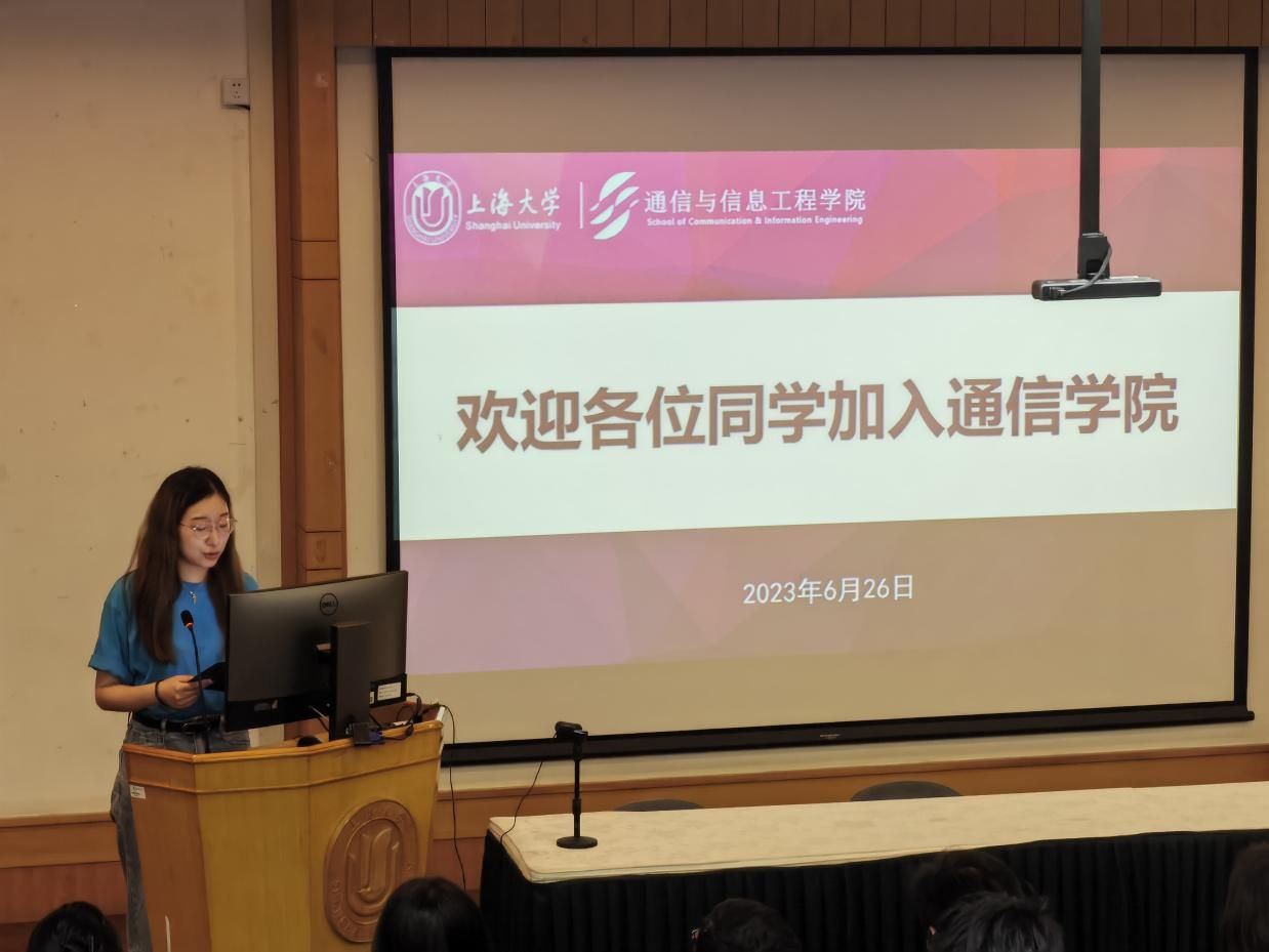 随后,孙晓岚老师作为2022级班主任代表,回忆了多年前来到上大的经历,希望同学们能够以顽强的斗志应对学习,希望成为2022级学生的引路人,帮助同学们在通信学院后三年的专业学习中答疑解惑,欢迎同学们与班主任交流。