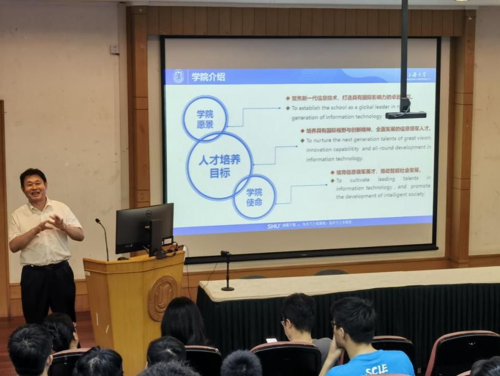 副院长金彦亮老师分别从学院概况、师资力量、课程体系、教学模式、就业前景等方面对通信学院进行了详细的介绍,希望同学们能够站在新的起点上,奋力奔跑,持之以恒,争做一名优秀的通信人。