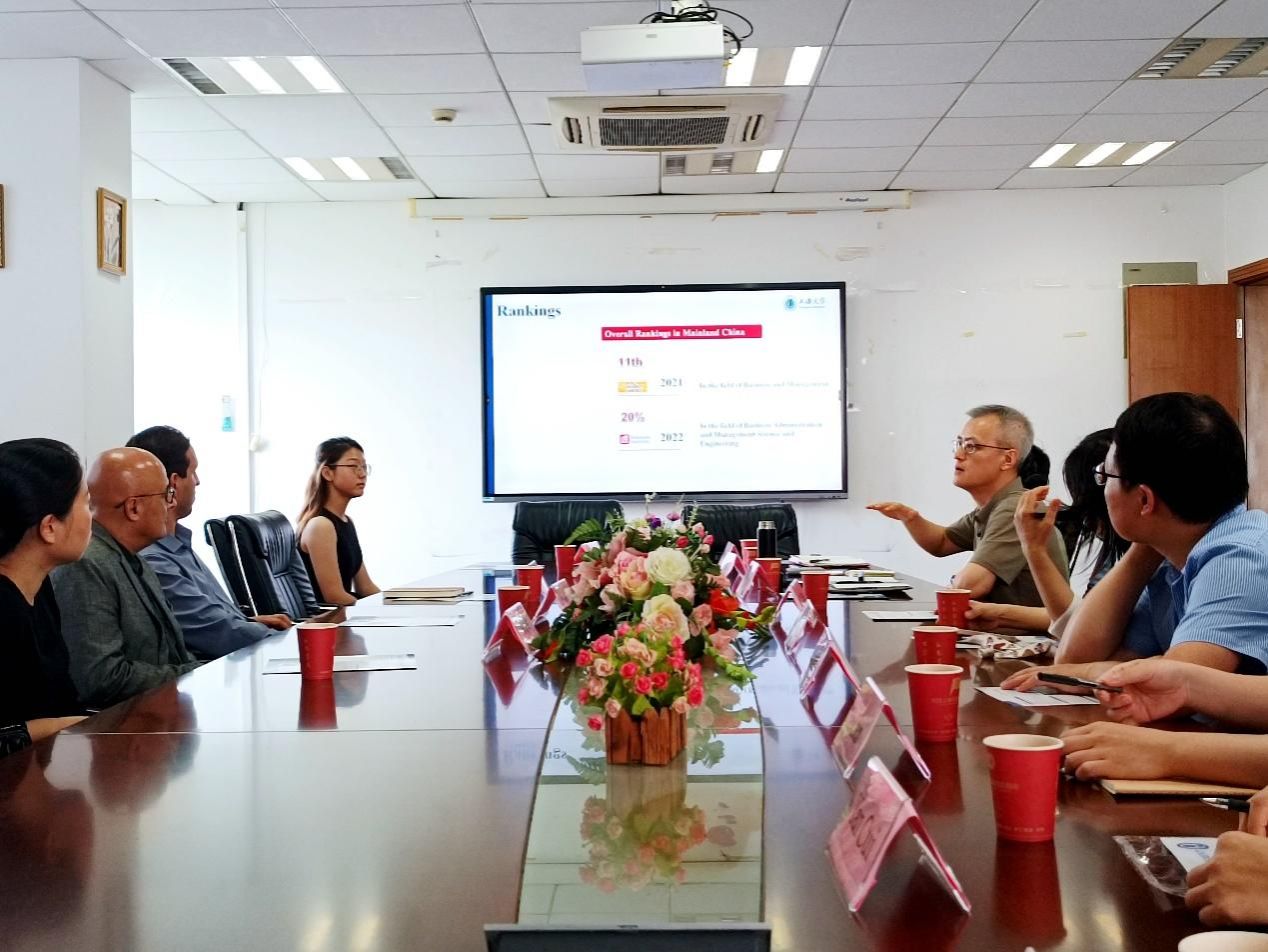 于晓宇副院长从国际化的视角介绍了管理学院,包括师资国际化、科研国际化、国际合作项目和国际学历学生情况。于晓宇副院长希望双方能够在教学科研和人才培养项目中深化合作,取得实质性的合作成果,推动中巴两校间的人文与学术交流。