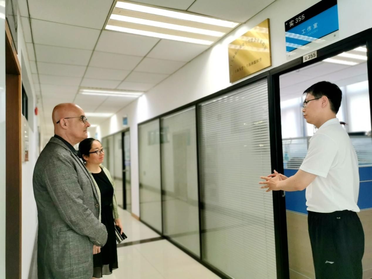 座谈会后,巴林大学副校长Qader博士与周倩雯院长在周建教授、张思副教授等人的陪同下,参观了管理学院的金融系统工程实验室、智能物流与供应链管理实验室、上大和数区块链与智能会计实验室。