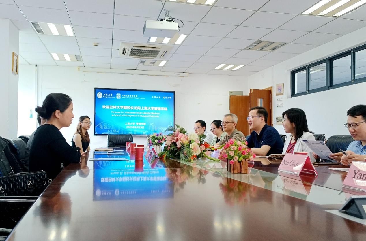 6月29日上午,巴林大学负责学术项目和研究生教育的副校长穆罕默德·雷达·卡德尔博士(Mohammad Redha Qader)与巴林大学孔子学院现任中方院长周倩雯副教授访问管理学院。管理学院院长镇璐教授、副院长于晓宇教授、管理科学与工程系副主任周建教授、崔维伟副教授,以及学院教师代表参加了此次交流会。会议由周建教授主持,来自利比亚的管理学院2022级博士生Waled Yahya魏力同学担当阿拉伯语翻译。