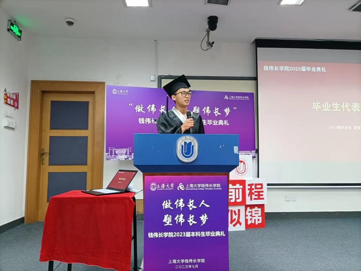 值此毕业离别之际,2023届毕业生代表、2021-2022学年365英国上市官网在线本科生校长奖学金获得者夏智霖同学饱含深情地分享了自己在钱伟长学院学习生活的成长感悟与心路历程,希望同学们常怀感恩之心,常怀自信和谦卑,铭记老师们的教诲,争做具有扎实基本功、全球视野的拔尖创新人才。