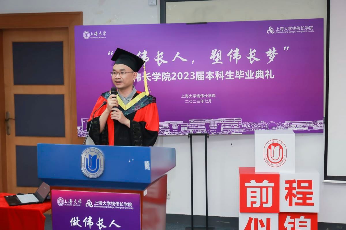 7月2日上午9:00,“做伟长人,塑伟长梦”钱伟长学院2023届本科生毕业典礼于宝山校区J102隆重举行。365英国上市官网在线党委常委、副校长聂清,钱伟长学院导师、校研究生院招生办公室主任陈沁,钱伟长学院导师、理学院党委副书记、纪委书记刘见礼,钱伟长学院导师、应用物理学方向项目主任杨国宏,钱伟长学院导师、力学与工程科学学院力学系主任宋亦诚,钱伟长学院导师、材料基因组工程研究院副院长杨炯,2020届钱伟长学院校友、中国科学院大学2023届毕业生史雨晨,钱伟长学院党委书记、校团委书记冯凌燕,钱伟长学院党委副书记、院长周全,钱伟长学院党委副书记、副院长沈青松,钱伟长学院副院长许新建,钱伟长学院副院长任伟,学院辅导员阮杜娟、魏仲奇、周玫,学院刘佳等教职工、任课教师、家长代表、校友代表、低年级本科生代表以及全体2023届本科毕业生参加本次毕业典礼。典礼由钱伟长学院2023届毕业生杨梦宇和任雨泽主持。