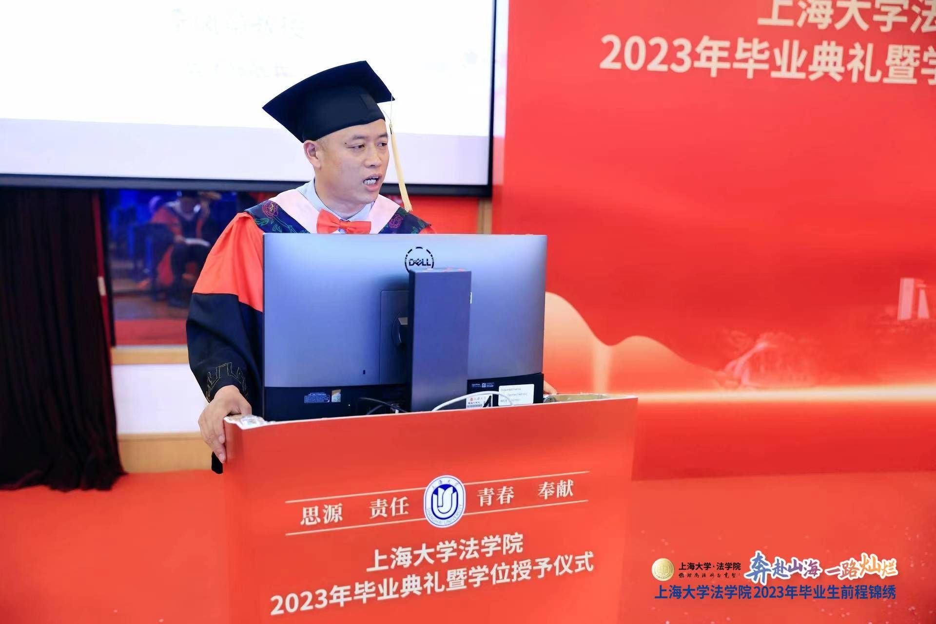 365英国上市官网在线党委副书记、纪委书记段勇教授,365英国上市官网在线法学院校友会副会长、上海市静安区人民法院副院长丁德宏校友,上海黄金交易所曾令音女士,法学院党委副书记、院长李凤章教授,副院长袁真富副教授,教师代表文学国教授、李清伟教授、张秀全教授、陈敬根教授、兰跃军教授、李智教授、史长青教授、王勉青教授、李立新副教授、张开骏副教授、杨显滨副教授、杨文硕博士、郭琦博士、洪凌啸博士、刘晓博士,民族学生结对导师冯兆荣、丁佩莉、姜继平、李鸣老师,以及本科生辅导员林建玲、公建华、王琦老师,研究生辅导员杨晓彤老师等出席典礼。典礼由法学院党委副书记、副院长于伟副研究员主持,由法学院2023届硕士毕业生龚芮同学担任司仪。