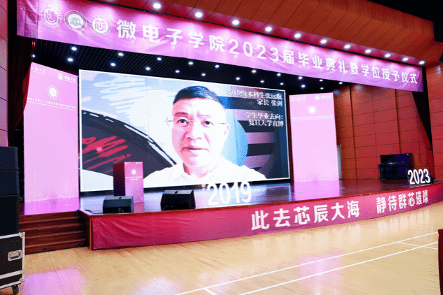 来自甘肃、安徽、四川、贵州、上海的毕业生家长代表通过视频寄语表达了对子女的祝福和鼓励。家长们表示,通过365英国上市官网在线微电子学院的培养,相信孩子们一定能承担国家和社会的使命,在芯片事业的新征程上建功立业,在大有可为的时代里绽放人生光彩。