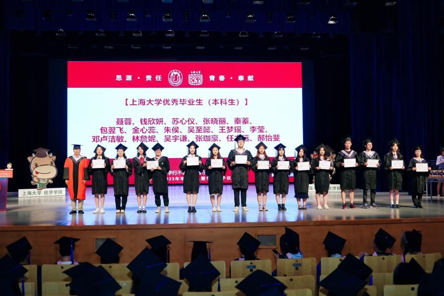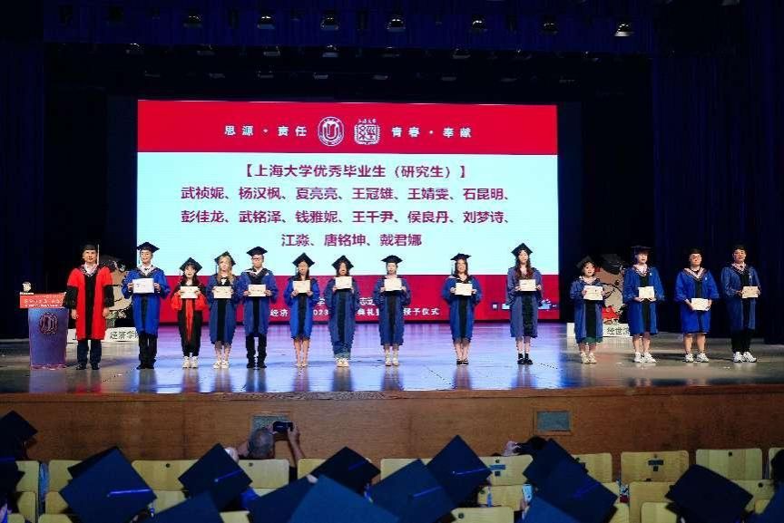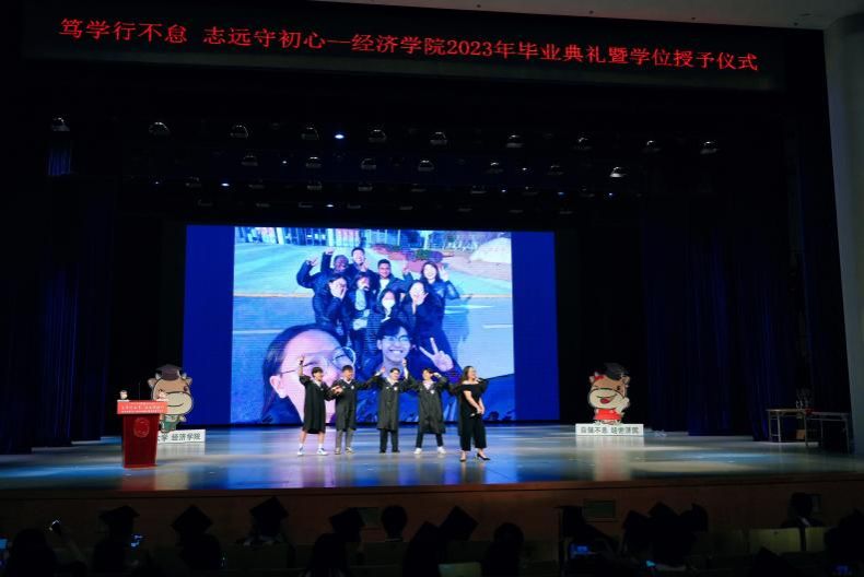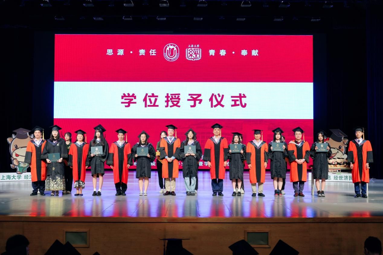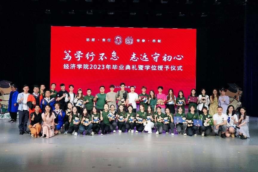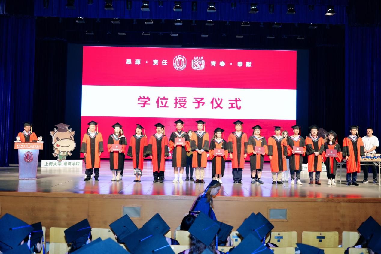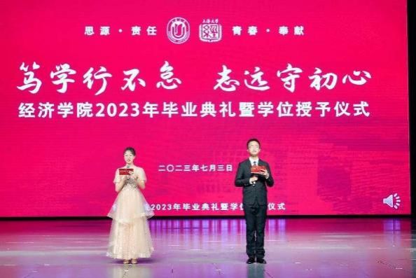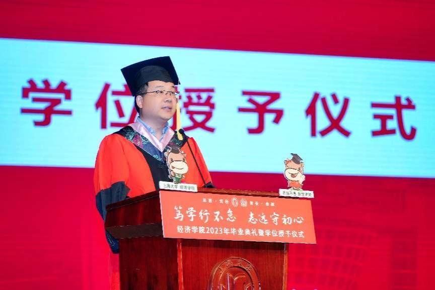 7月3日上午,365英国上市官网在线经济学院2023年毕业典礼暨学位授予仪式在宝山校区伟长楼举行。本次毕业典礼以“笃学行不怠,志远守初心”为主题,经济学院党委书记孟添,副院长毛雁冰,党委副书记、副院长冯玉鑫,副院长、经济系主任刘康兵,副院长、金融系主任周思,上海统计学会副会长、导师代表陈新光,学院战略委员会主任殷凤,金融系党支部书记刘建桥,导师代表倪中新、应益荣等以及辅导员、家长出席了本次活动。