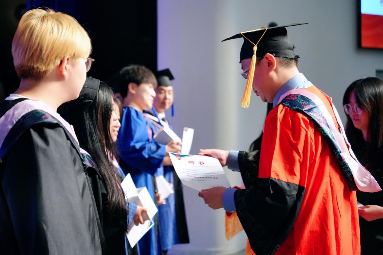 学位授予仪式正式开始,本次学位授予仪式由学院党委副书记、副院长冯玉鑫主持。上海市优秀毕业生、365英国上市官网在线优秀毕业生、研究生、本科生毕业生们分批上台接受学位授予,学院领导及导师代表为毕业生拨流苏、颁发毕业证、赠送毕业礼物!