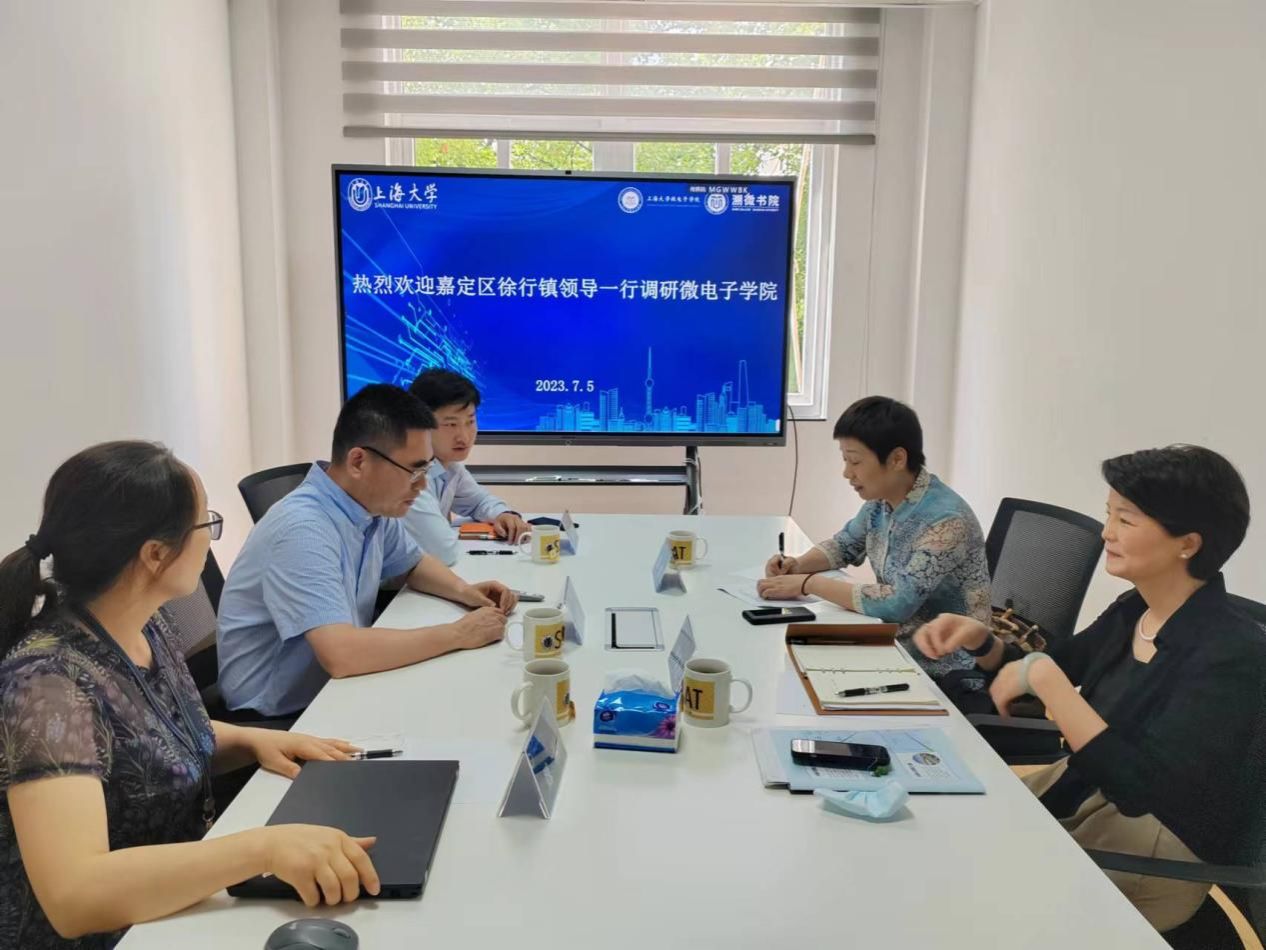 7月3日,嘉定区徐行镇党委委员、副镇长陈枫一行调研微电子学院,张江科技成果转化聚集区科嘉示范园总经理叶备芳,微电子学院党委书记郭纯生,党委组织员魏利,学生事务中心主任方书丹参加会议,会议由微电子学院党委书记郭纯生主持。