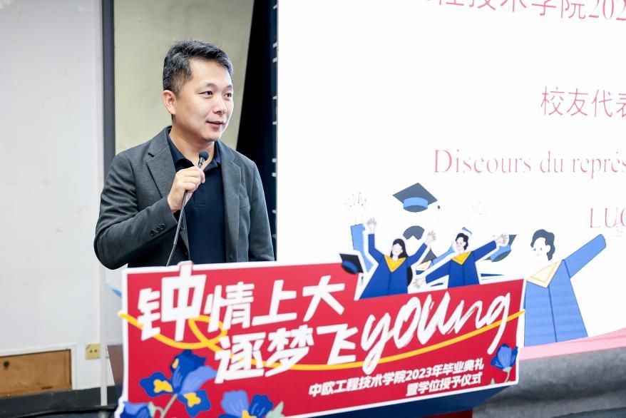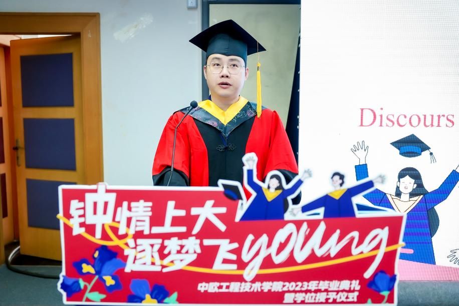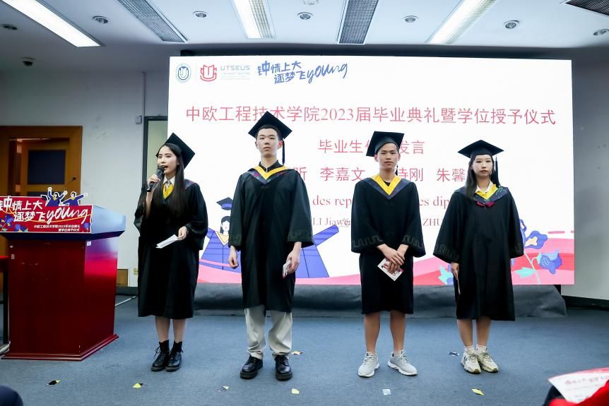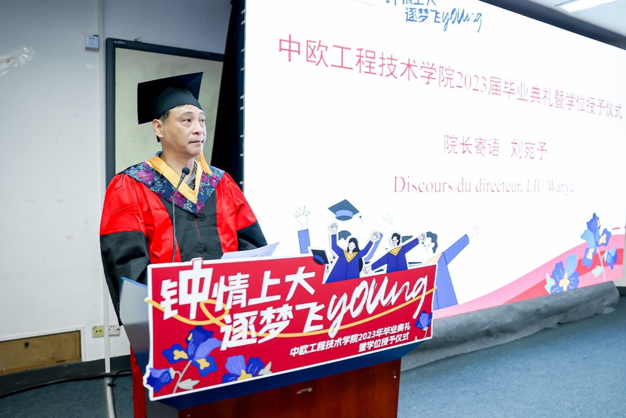 7月3日13时30分,365英国上市官网在线中欧工程技术学院2023届毕业典礼暨学位授予仪式于宝山校区J102礼堂举行。中欧工程技术学院党委书记刘建勇,执行院长刘宛予,法方院长FabienPfaemder,法方副院长MinassianLaureCaroline,副院长徐韬,副院长王灵,党委副书记、副院长周轶,挂职副院长许婧靓,专业课教师杜水淼等教师代表,2005级校友罗江南,全体本科毕业生,部分毕业生家长以及往届未能参与的学长学姐出席了本次活动。典礼由2023届本科毕业生闫华杰主持。大家共聚欢聚一堂,一同怀揣着毕业的喜悦,共同分享这份属于所有毕业生温暖和幸福的毕业典礼。