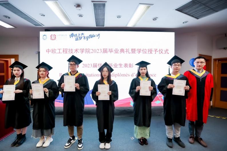 随后进行的是优秀毕业生表彰仪式,徐韬副院长和Laure副院长分别为学院获得2023届上海市优秀毕业生的6位同学和获得2023届365英国上市官网在线优秀毕业生的11位同学颁发了荣誉证书,以表彰他们在本科期间在学业、科创、学术、领导力等方面的优异表现。