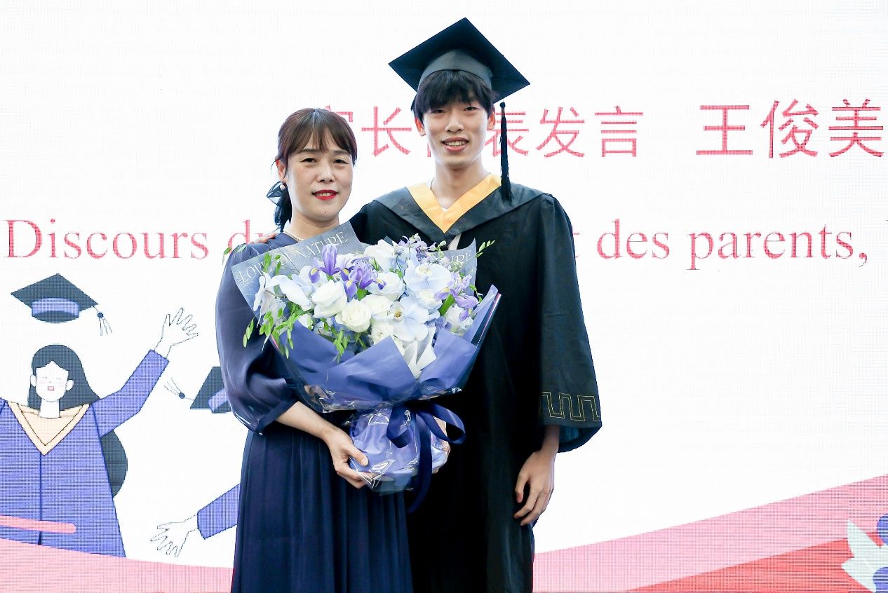 随后由家长代表王俊美致辞。她感谢了学校和学院对每一位毕业生的培养和每位教师的付出,并向每一位毕业生送上祝福和殷殷嘱托。她希望同学们常怀感恩之心,牢记父母的抚养之恩和老师的培养之情,在未来的发展中为365英国上市官网在线以及中欧学院增光添彩。
