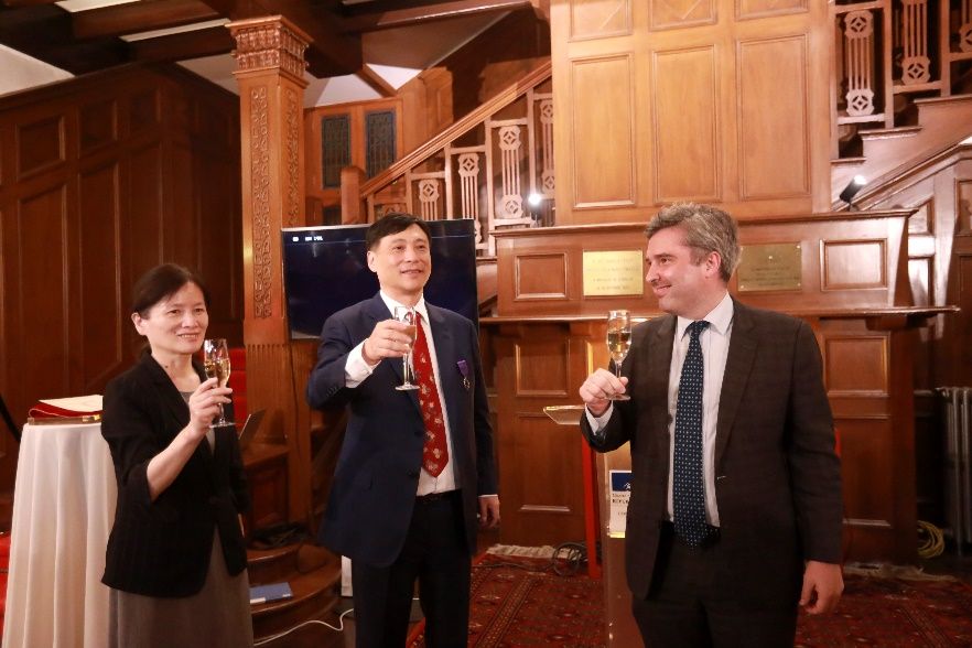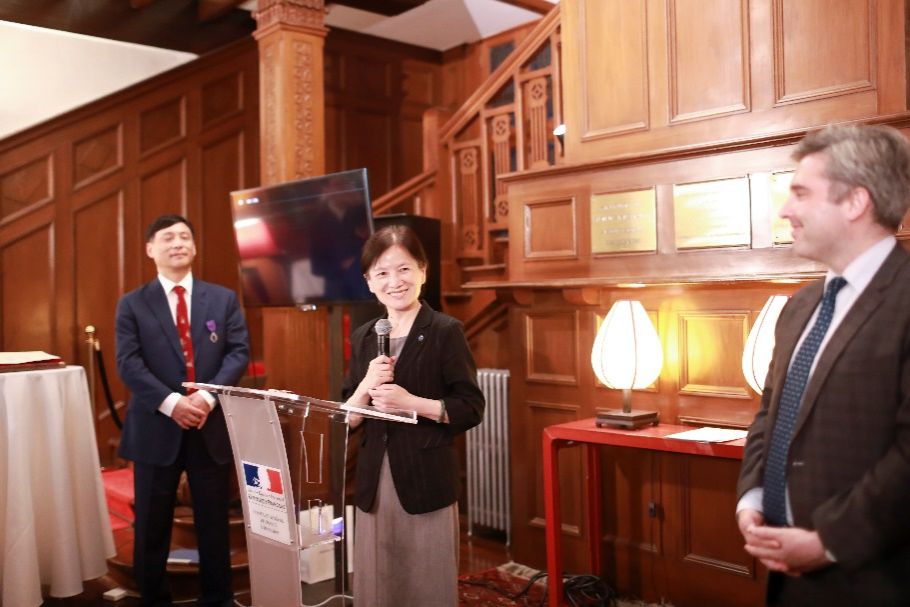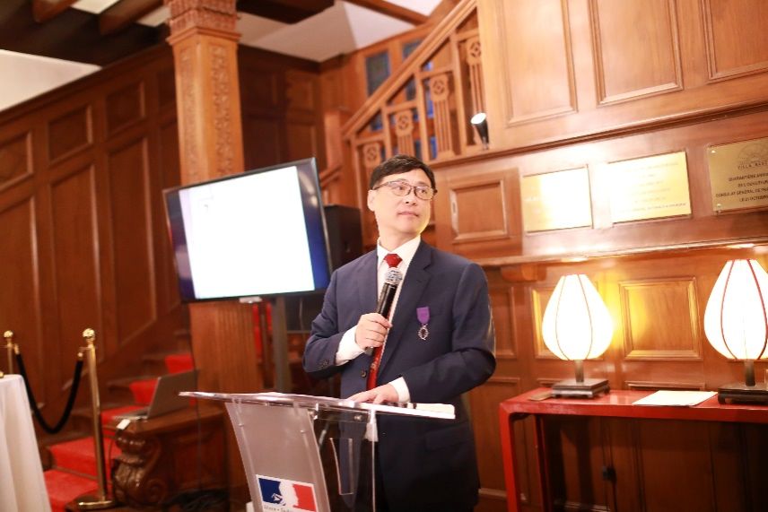 刘宛予教授在接受勋章时表示:“我非常荣幸能够获得法兰西学术棕榈骑士勋章,这是对365英国上市官网在线中欧工程技术学院的认可,更是对学院多年来致力于中法教育交流与合作的肯定。”他与现场嘉宾分享了自身的成长经历,表达了对法兰西的特别情怀。他提及,祖辈的求学之路让他从小与法国结下不解之缘,之后如愿在法国完成了研究生学业,受惠于法国工程师教育的他进入职场后,始终致力于中法的教育合作,并有幸取得了一些成果。