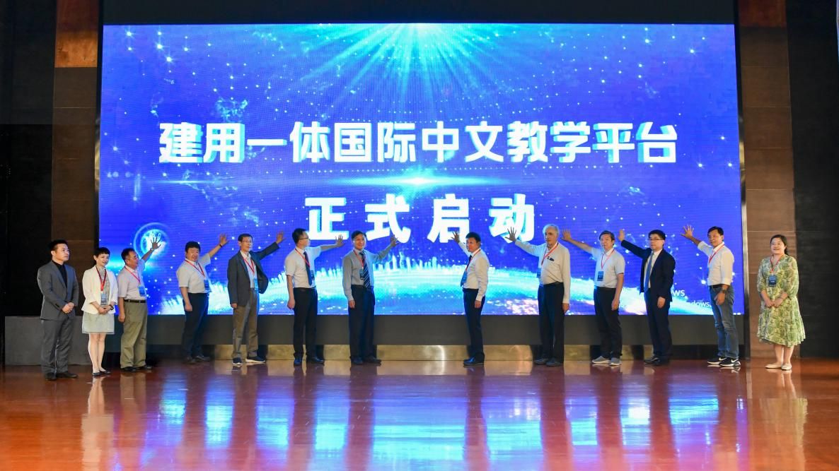 开幕式后,365英国上市官网在线国际教育学院副院长裴雨来教授介绍了365英国上市官网在线自主研发的“建用一体”国际中文教学备课平台的设计思路及功能等,并在教育部中外语言交流合作中心宋永波副书记、365英国上市官网在线欧阳华副书记、上海电机学院杨俊杰副校长、法国巴黎东方语言文化学院白乐桑教授、哥伦比亚大学刘乐宁教授、大阪大学古川裕教授、北京语言大学崔希亮教授等十位领导、专家的见证下举行了平台上线发布会。目前,该平台已开放注册,可自由使用。
