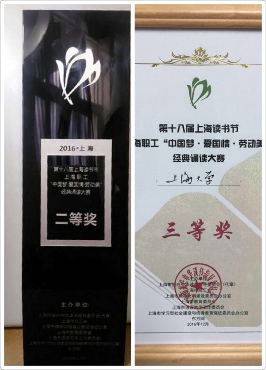 12月5日下午,由上海市振兴中华读书指导委员会、上海市总工会、上海市精神文明建设委员会办公室、上海市教育委员会、上海市语言文字工作委员会、上海市学习型社会建设与终身教育促进委员会办公室、东方网等多家单位共同举办的第十八届上海读书节闭幕式暨上海职工“中国梦·爱国情·劳动美”经典诵读大赛决赛在上海建工大厦举行。