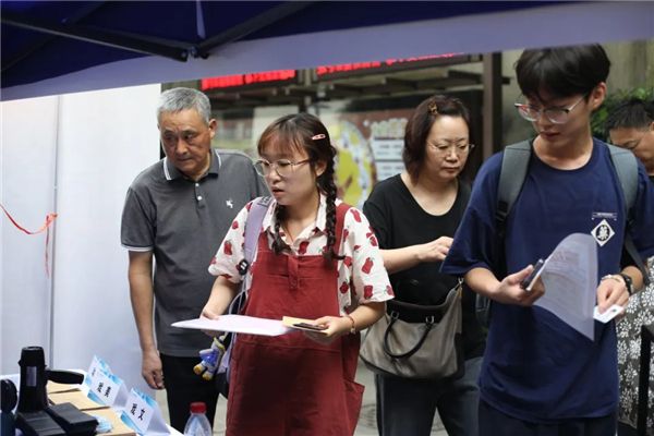 由各专业师哥师姐组成的导生队伍为新生们办理报到手续,耐心地给同学们答疑解惑、提供帮助。