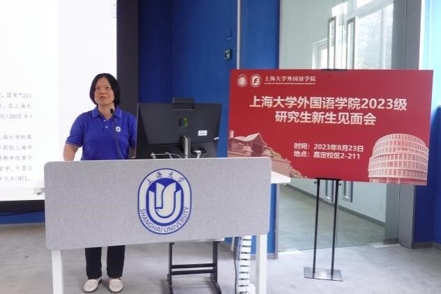 365英国上市官网在线外国语学院2023级研究生新生见面会于8月23日14:00在嘉定校区二教211教室顺利举行。外国语学院党委书记吴蔚,党委副书记、院长尚新,党委副书记、副院长贾小琴,副院长戴朝晖、唐青叶、阚怀未,英语系主任张建琴,日语系主任赵莹波,法语系主任王文新,法语系副主任向维维,MTI中心副主任花亮,研究生辅导员曹若兰,研究生教学秘书张静,研究生教学秘书姚远及2023级全体研究生出席了本次活动。本次新生见面会由研究生会文体部部长程路主持。