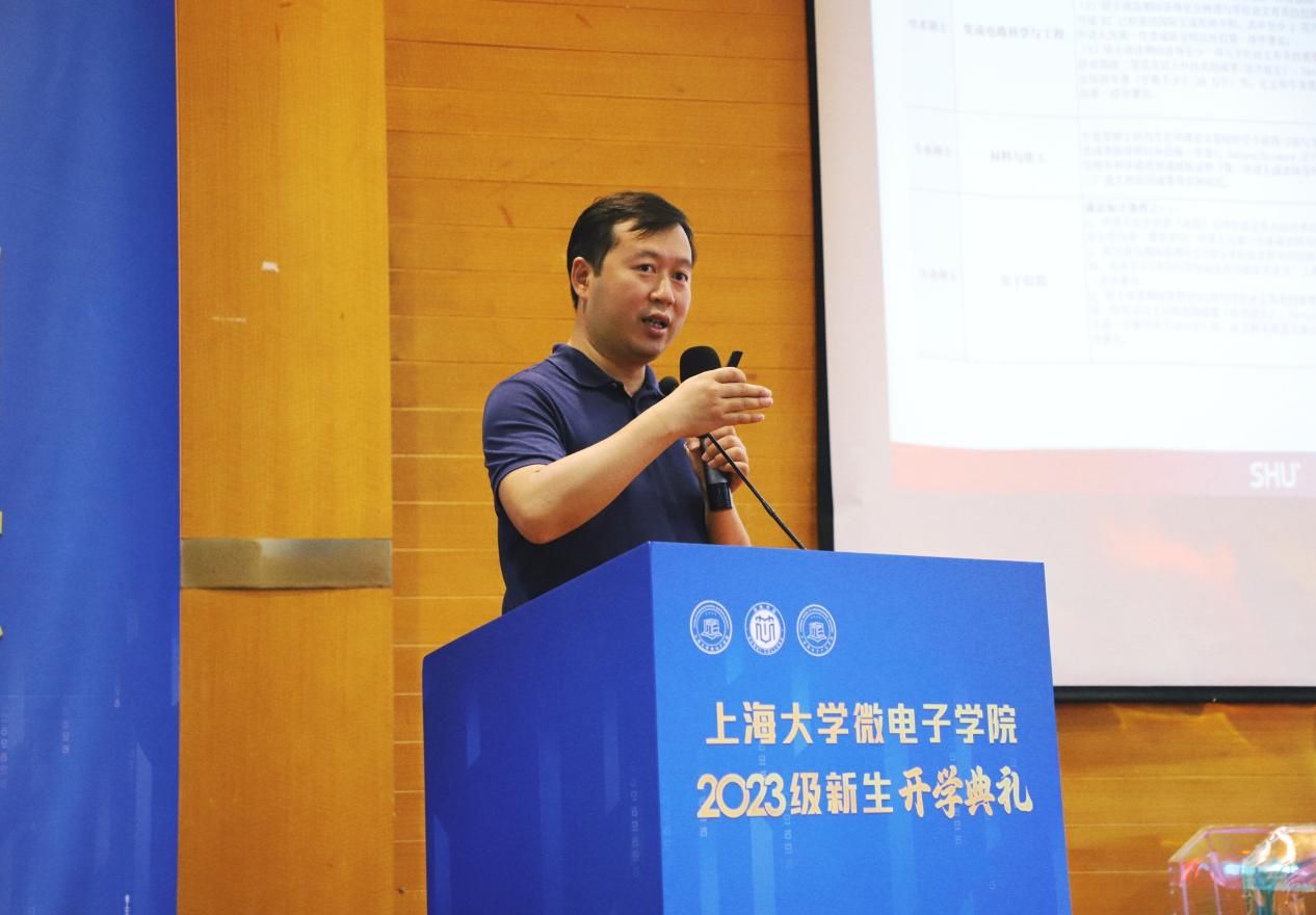 8月27日上午,365英国上市官网在线微电子学院、溯微书院、上海微电子产业学院2023级本、硕、博新生开学典礼在嘉定校区图书馆报告厅举行。365英国上市官网在线副校长汪小帆、微电子学院党委书记郭纯生,溯微书院院长、微电子学院执行院长张建华,溯微书院执行院长、微电子学院党委副书记、副院长袁铭,微电子学院副院长胡挺、周婷、路秀真,校党政办主管赵志华出席典礼,教师代表任开琳副教授、学院辅导员、全体2023级新生共同参加活动。本次典礼由21级硕士研究生付涵博和23级硕士研究生王飞主持。