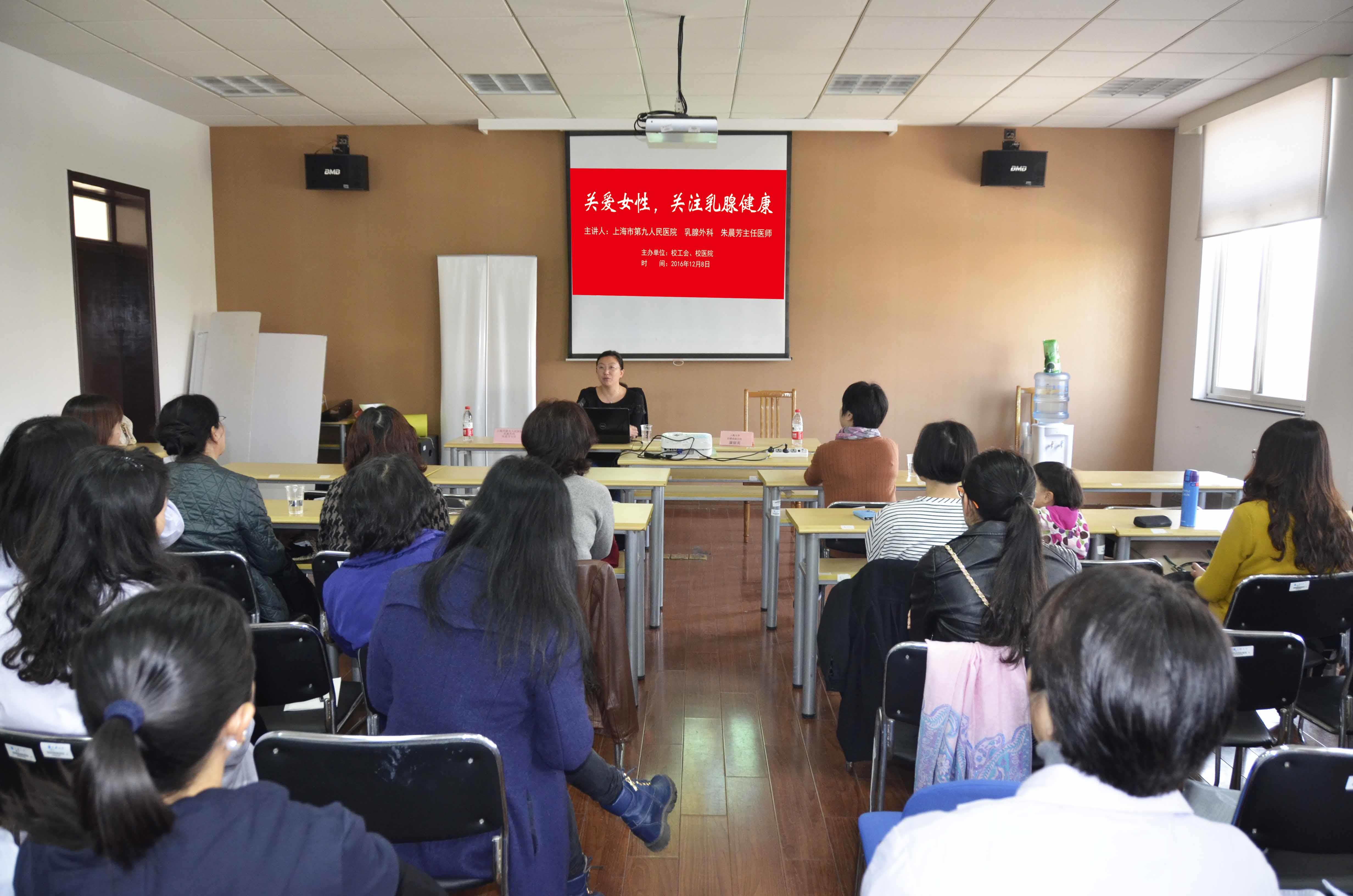 12月8日下午,上海市第九人民医院乳腺外科朱晨芳主任医师在校本部校医院三楼多功能室A318为365官网教职工作了题为“关爱女性,关注乳腺健康”的讲座。