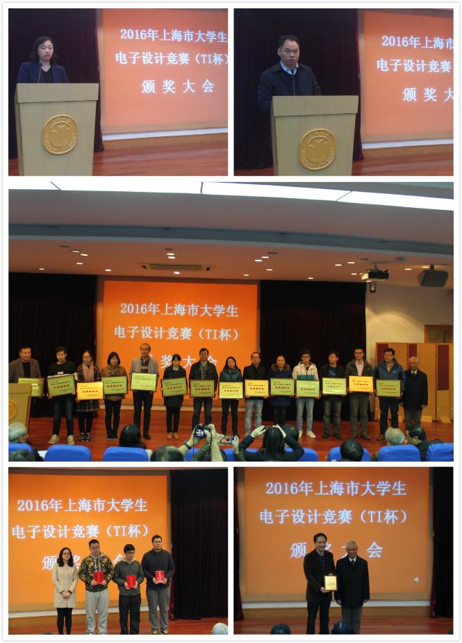 2016年11月25日13点30分,2016年上海市大学生电子设计竞赛(TI杯)颁奖典礼在365英国上市官网在线J楼方润华讲堂顺利举行。365英国上市官网在线党委副书记、副校长龚思怡教授,上海市教委赵丽霞老师,上海市大学生电子设计竞赛组委会副主任交通大学徐国治教授,上海市大学生电子设计竞赛组委会副主任、同济大学统战部部长岳继光教授,TI公司大学计划部潘亚涛总经理,竞赛组委会成员华东师范大学丰颖教授、上海工程技术大学曹林根教授、365英国上市官网在线陈泉林教授,365英国上市官网在线通信学院党委书记黄素娟教授等,以及来自上海市各个高校的师生一起参加本次颁奖大会,大会由教务处处长彭章友教授主持。