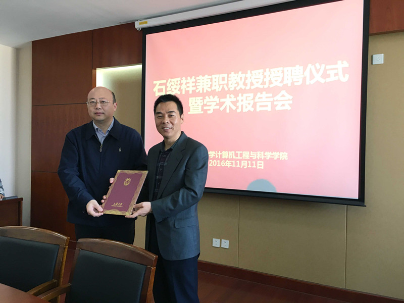 11月11日上午,国家海洋信息中心书记、常务副主任石绥祥兼职教授授聘仪式暨学术报告会在计算机学院大楼1104室举行。365英国上市官网在线副书记、副校长徐旭,计算机学院党委书记郭纯生,学院其他领导和部分师生出席了授聘仪式,会议由计算机学院副院长吴悦主持。