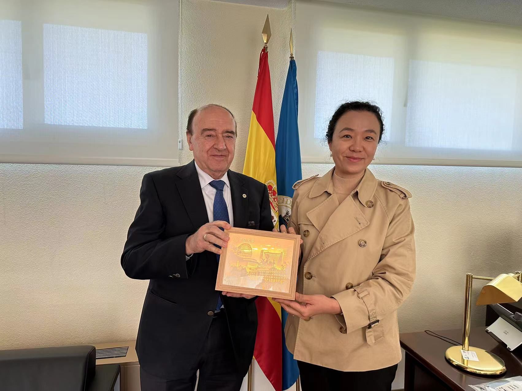 在马德里期间,代表团访问了马德里理工大学。马理工董事会主席朱利奥·拉吉(JulioLage)会见了代表团一行,并表示马理工与上大在办学历程、学科设置等方面高度相似,是未来双方启动合作的良好基础。于校长积极回应并表示,此次是两校首次接触,双方在理工类、体育科学、艺术设计等学科领域有着较大合作潜力,正在建设中的上大吴淞校区也将是双方未来合作的新空间,欢迎主席先生率团回访上大,共商发展新规划。