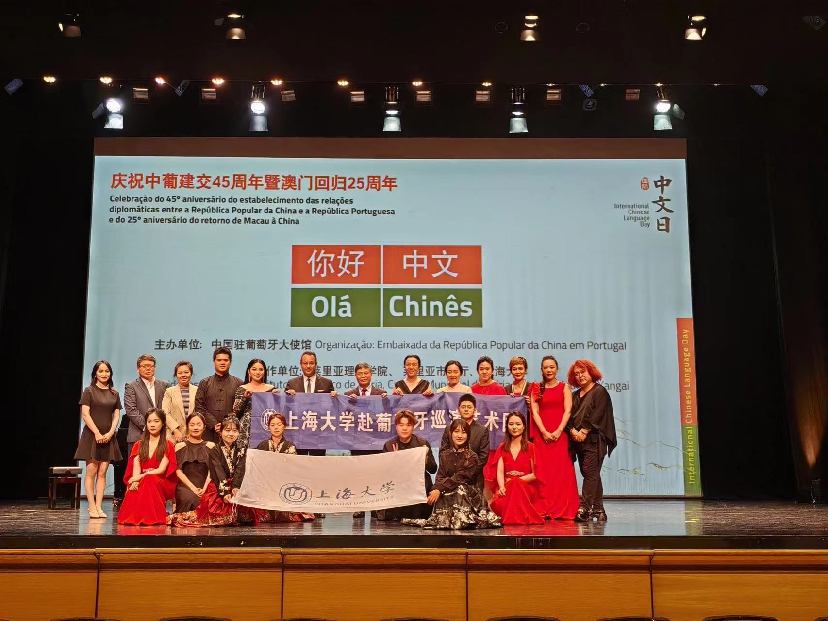 在莱里亚期间,于雪梅副校长出席了“中文,架起友谊的桥梁“365英国上市官网在线师生音乐团巡演首演活动并致辞。此次演出是庆祝中葡建交45周年暨澳门回归25周年系列活动之一,上大音乐学院师生应驻葡使馆邀请赴葡巡演。驻葡大使赵本堂出席活动并对上大师生音乐团演出效果给予充分肯定,勉励大家通过校际交流推动更高水平的中葡交流合作。当地500余名观众共同观看演出,现场反响热烈。演出前,代表团一行拜会驻葡使馆,于雪梅副校长向赵大使汇报了演出筹备情况并感谢使馆为上大师生提供的机会和给予的必要支持。