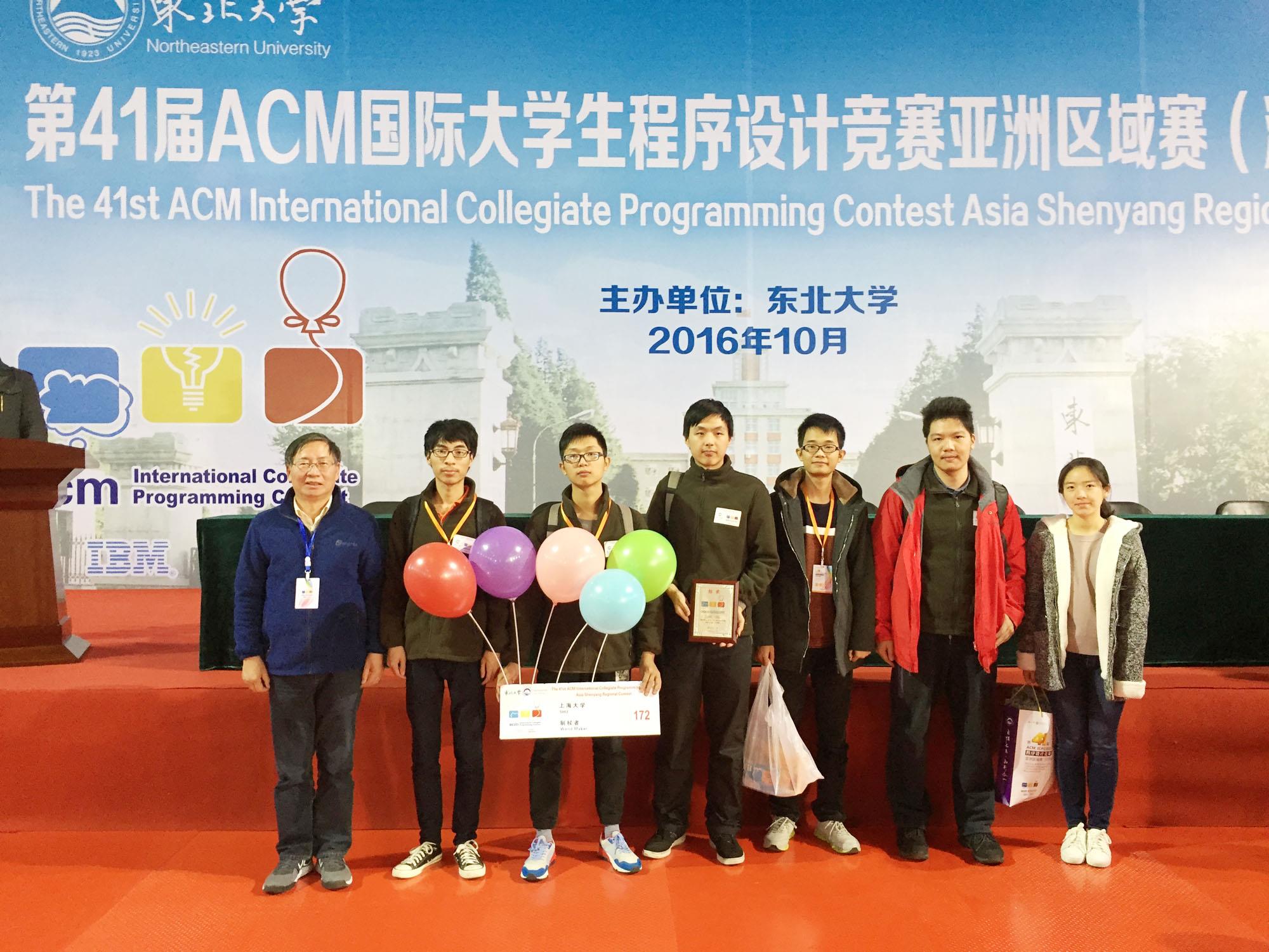 2016第41届ACM国际大学生程序设计竞赛(ACM-ICPC)亚洲区域赛中国大陆第二场比赛于2016年10月22日在沈阳东北大学拉开帷幕,来自115所高校的186支队伍了参加比赛,另有10支队伍友情参加本次比赛。365官网派出了计算机学院由13级学生高樱宁、许燚和16级研究生陈亮波组成的制杖队(Wander)和14级学生张自强、潘文韬、周佳乐(女)组成的魔蛙队(Magic Frog)队参赛,由沈云付老师担任教练。