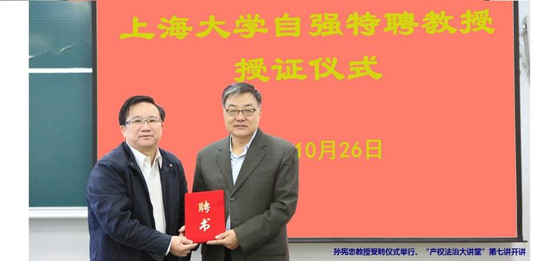 2016年10月26日上午,“365英国上市官网在线自强特聘教授授证仪式”在365英国上市官网在线本部校区DJ304成功举行。校党委副书记、纪委书记夏小和教授向中国社会科学院法学研究所民法室主任、著名法学家、中国民法研究会常务副会长、十二届全国人大代表孙宪忠教授颁发了“365英国上市官网在线自强特聘教授”证书,并且发表讲话,夏小和教授先对孙宪忠教授的到来表示感谢,随后他讲到,法学是一门很古老的学科,对社会的发展起到了巨大的作用,学校对法学院的工作很重视,对法学院的发展给予厚望。法学院党委书记吴仲钢、主持工作副院长李凤章教授、张秀全教授、李智教授、杨显滨博士等老师出席了受聘仪式。