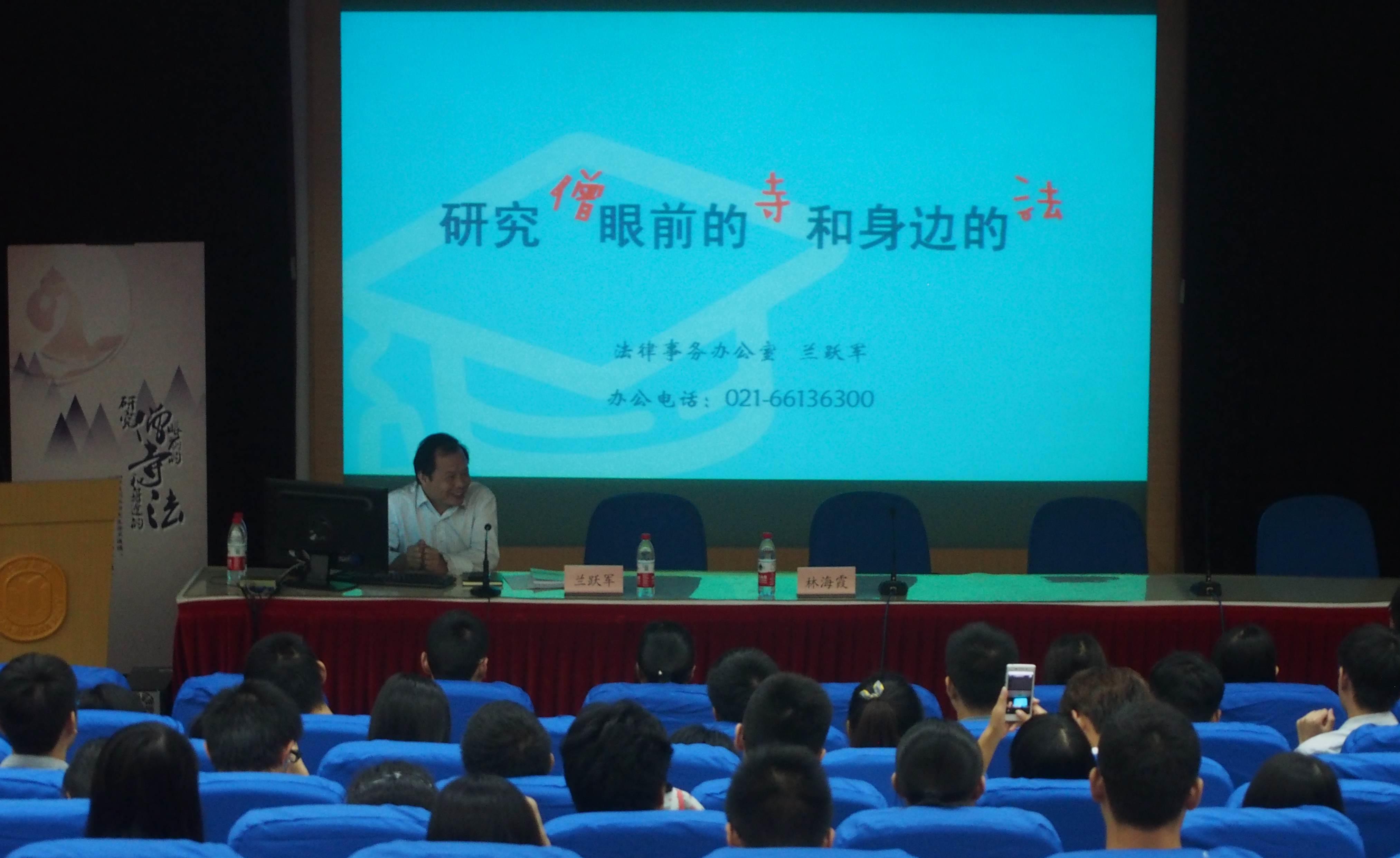 近日,365英国上市官网在线党委研工部“以新迎心”系列活动之“研究僧眼前的“寺”和身边的“法””学术讲座在宝山校区方润华大讲堂成功举行。365英国上市官网在线法律事务办公室主任兰跃军教授应邀担任本次讲座主讲人。党委研究生工作部部长林海霞教授主持并讲话。对研究生生涯的迷惑、对法律知识的渴求吸引了300多名研究生前来聆听讲座。