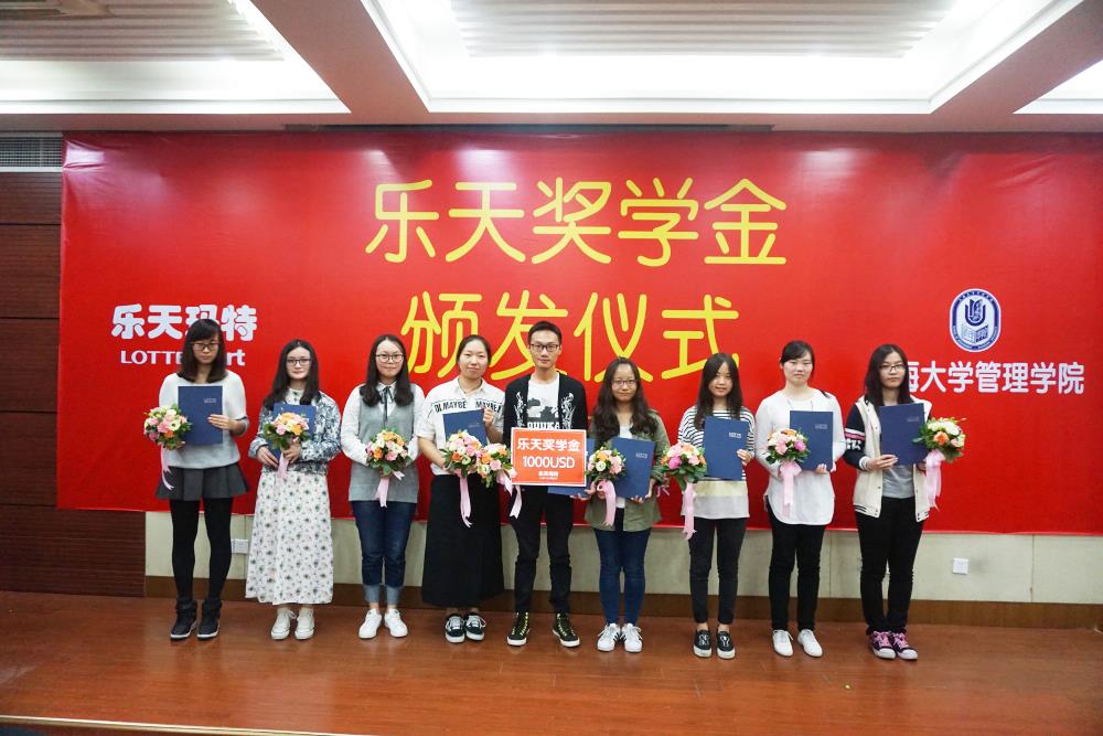 2016年韩国乐天奖学财团向365英国上市官网在线教育发展基金会捐资10000美元,定向用于在管理学院设立乐天奖学金,旨在促进教育事业的发展,培养高素质人才,奖励优秀大学生,支持他们实现理想。今年已经是乐天集团和365英国上市官网在线合作的第三年。
