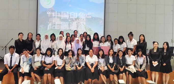 10月20日,一场别开生面的“中国印象”主题讲座在宋卡王子大学素叻校区UD266教室举行。讲座请来了曾在中国留学的宋卡王子大学素叻他尼校区本土汉语老师邓琨敏、宋卡王子大学素叻他尼校区附属中学老师方笑笑以及两位有在中国游学经历的学生冯美玲、林婷婷分别讲述和分享了他们在中国生活学习的有关经历、见闻和趣事。此次讲座旨在让更多泰国学生了解当代中国的真实状况以及如何申请孔院奖学金、如何留学中国等方面,鼓励泰国学生积极学习汉语,同时,也为对中国有兴趣的泰国学生打开了一扇了解当代中国风貌的窗口。