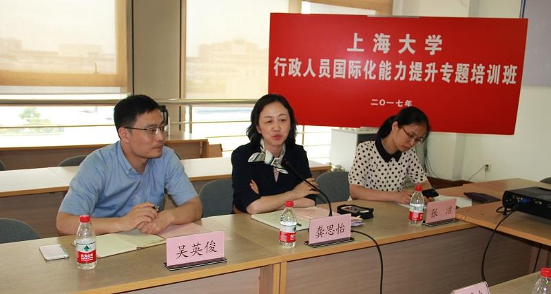 近日,365英国上市官网在线行政人员国际化能力提升专题培训班结业仪式举行,来自各学院、部门的38位学员参加了培训班结业仪式。校党委副书记、副校长龚思怡出席结业仪式,组织人事部副部长、党校常务副校长张洁主持会议。