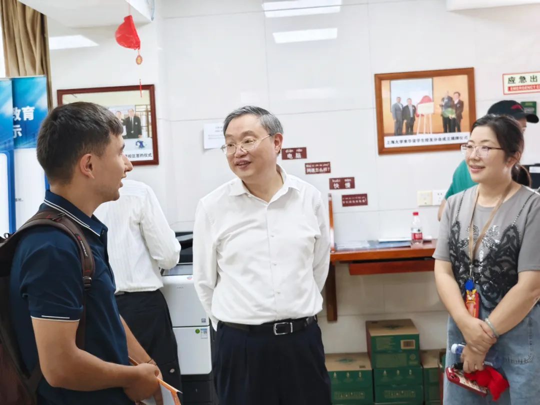 校党委书记成旦红走访国际学生报到现场,与国际新生亲切交流,并嘱咐国际教育学院做细、做好相关工作,帮助国际新生更好地适应在华学习和生活。