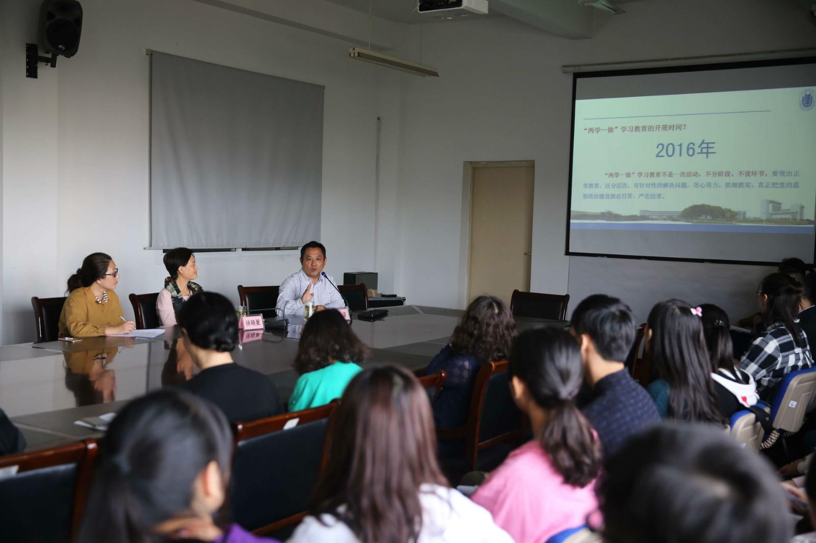 2016年10月10日下午,数码艺术学院全体师生党员齐聚数码A417会议室,开展两学一做”专题学习教育,特邀365官网宣传部部长李坚进行“不忘初心继续前行”——解读习近平总书记七一重要讲话精神学习的专家讲座。学院党委书记陈大明、副书记徐晓夏对李坚部长的莅临表示热烈欢迎,学习活动由副书记徐晓夏主持。