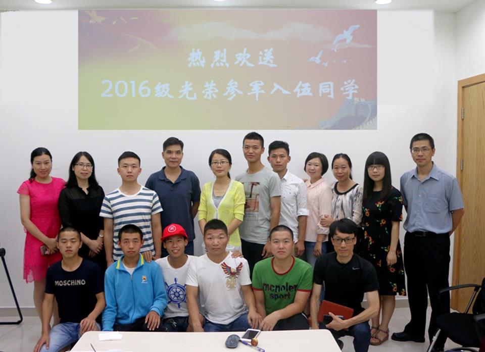 9月18日下午1点,社区学院为今年积极入伍的五位新生和三位从部队光荣回归的2014级学生举办送迎会,社区学院310会议室内气氛融洽,掌声热烈。