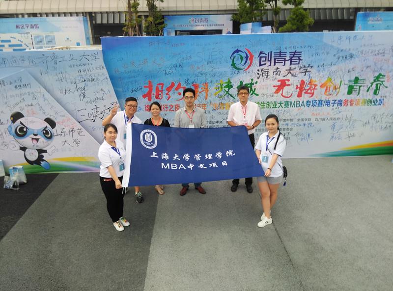 2016年8月28日至30日,2016年“创青春”全国大学生创业大赛MBA专项赛、电子商务专项赛决赛在四川省绵阳市举行。由我院于晓宇教授指导,管理学院2015级MBA赵春、范伊琳、李莉、王珏、杜惠、钟旭、李建国、孙康和信息管理专业15级研究生王子轩同学的创业项目《“以爱之名”居家养老互助关爱平台》参与本次专项赛。管理学院党委副书记朱宏涛老师、校团委副书记陆静老师和管理学院MBA中文项目史焱赟老师带队参赛。