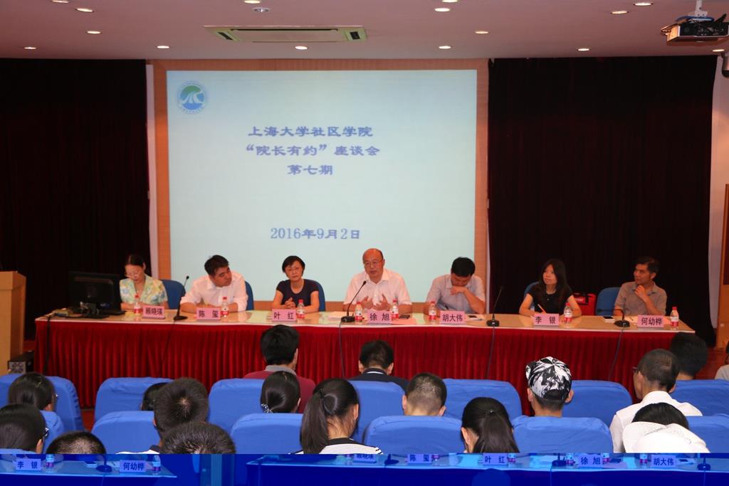 9月2日下午,社区学院“院长有约”第七期座谈会在校本部J202拉开帷幕,365英国上市官网在线党委副书记、副校长、社区学院院长徐旭教授,学工办主任胡大伟、招毕办主任叶红、教务处副处长顾晓英、社区学院导师代表陈玺、校团委副书记李银以及社区学院党委书记、社区管理部主任陆瑾,社区学院主持工作副院长何幼桦、副院长陈秋玲、党委副书记孙玉华、陈伟平、社区学院挂职干部、导师等,与500多名社区学院新生一同参加了此次活动。本次座谈会由2016级“新生服务社”成员蒋紫薇主持,会场内座无虚席,更有同学坐在台阶上听完了全场活动。本次2个小时的座谈会,丰富多样的内容让新生们受益匪浅,不仅让其更为深入地了解了社区学院的各类培养计划、目标、宗旨以及具体措施,又收获了许多宝贵的学习和生活经验。