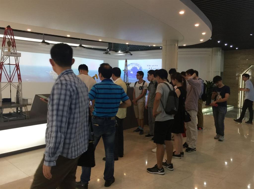 海隆科技处周勇其处长热情地带领同学们参观海隆集团展示中心,并详细介绍了零卡瓦咬伤快速起下钻钻杆、超高抗扭钻杆接头、高效岩屑床清除钻具、非粘接海洋柔性管、防腐涂层等科研成果的创新内涵、工程意义及背后的故事。随后,周处长将师生分成四组参观实验室,热情的工作人员详细讲解了拉扭耦合疲劳试验、材料力学性能试验、金属金相测试等试验的基本原理及具体过程。在参观过程中,工作人员还不时询问同学是否理解,并分享了很多实践经验,同学们也积极与工作人员交流取经。