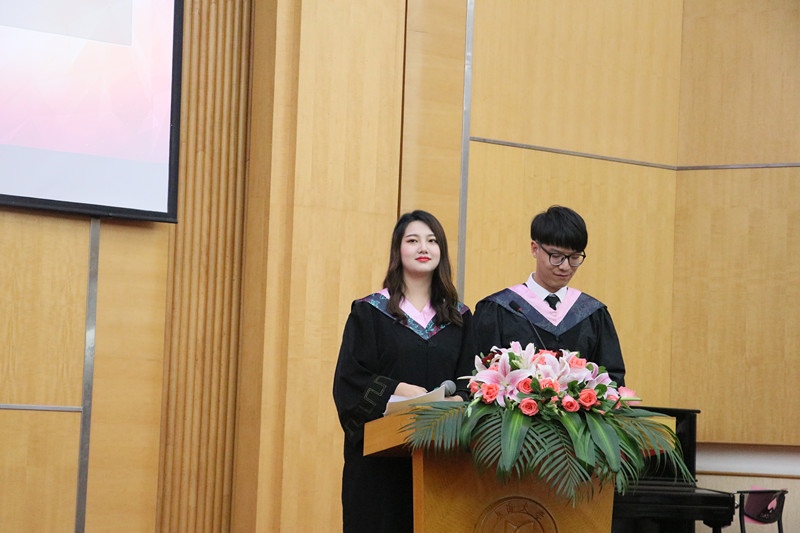 13级广告学专业的冷沫和13级新闻学专业的李白唐华主持了本次毕业典礼。学院党委副书记孙琦琰介绍2017届本科毕业生情况,党委书记王晴川宣读2017届上海市优秀毕业生名单。在过去的四年中,我们身边有许多人把优秀变成了自己的习惯,他们的名字在大学生活的在各个领域里熠熠生辉。