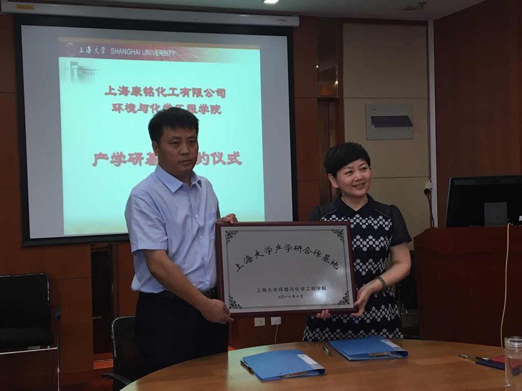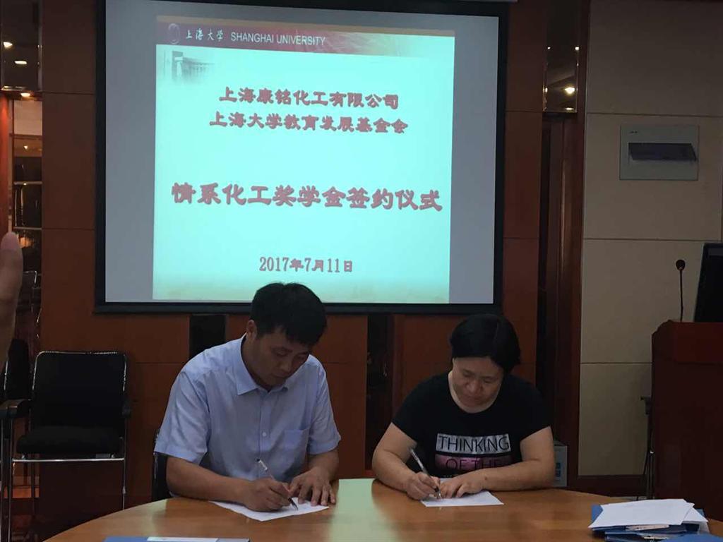 7月11日上午,上海康铭化工有限公司与我院产学研基地建立暨“情系化工奖学金”成立签约仪式在环化楼915会议室举行。上海康铭化工有限公司总经理王二国、副总经理陆伟、应用部经理闻冲、研发部经理杨保臣,365英国上市官网在线对外联络处副处长、校友会办公室副主任曹俊,环化学院党委书记钱冬英,副书记王宇华等院系党政领导及教师代表出席,签约仪式由环化学院副院长王勇主持。