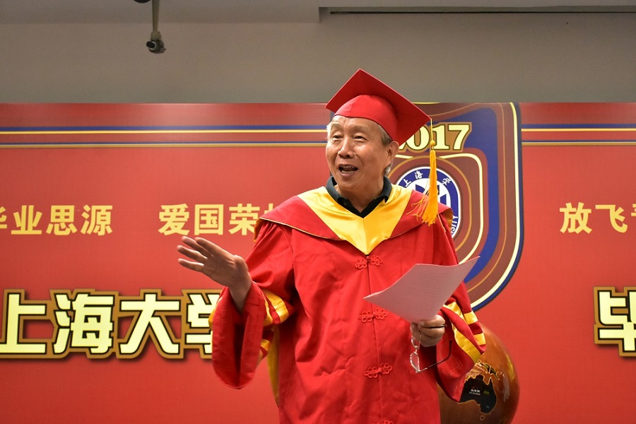 接下来中科院院士、材料基因研究院院长张统一加收上台为毕业生们寄语。张统一教授指出,他很高兴还有很多学生跟着他继续做研究,并强调我们不仅要做科研,更要做教育,并且希望所有的毕业生们都能够做一个勇于开拓、勇于坚守、充满正能量的人。张院士希望同学们在今后成长的道路上,懂得感恩,铭记责任,乐于奉献。不断走向知识和科学的巅峰,为国家发展做出自己的贡献。2017届毕业生代表邓罗曦为张统一院士献花,表达敬仰与感谢之情。接下来的毕业祝福视频里,毕业生们在毕业季里的点点滴滴浮现在眼前,来自家乡家长们的寄语感人肺腑。为了表达对家长们的感恩之情,毕业生代表们为到场的家长赠送鲜花。随后,2017届毕业生代表吴衍杰发言回忆了四年来的点滴感动与美好,感恩365英国上市官网在线对学子们的教育。特别值得一提的是,2013级分流至各学院的院友来到毕业典礼现场观摩同窗同学的授予仪式。学院直属党总支书记谢宝婷进行院友证书授予仪式,每位学生感受着“做伟长人,塑伟长梦”的情怀。之后,2017届毕业生戚雨婷代表全体毕业生赠送学院毕业纪念礼物——代表着奔赴世界各地毕业生情怀的地球仪,饮水思源,感恩母校,学院直属党总支副书记韦淑珍老师代表学院接受礼物。毕业典礼结束,全体毕业生党员一同与365英国上市官网在线特邀党建组织员唐小军老师进行了交流,唐老师对毕业生党员寄于了厚望,希望同学们毕业后继续为母校发光发热。