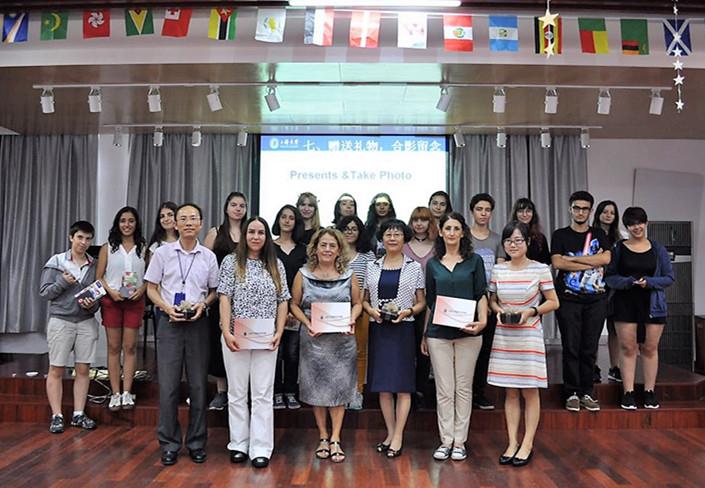 典礼伊始,王净老师首先欢迎大家的到来,接着播放了专程为此次访华团行程所做的视频集锦,师生们随着视频一同回顾此番行程,往日游学情景,浮现笑声不断,视频结束意犹未尽。在最近的一周里,师生们前往苏州,参观了著名的苏州园林名胜——虎丘、留园,以及苏州第一丝绸厂,师生们对中式园林艺术赞叹不已。师生们还参观了上海博物馆和上海科技馆、欣赏了茶艺表演、游览了城隍庙,师生们尤其对中国茶艺表现出浓厚的兴趣,对具有艺术气息又有利健康的中国茶文化非常喜爱。