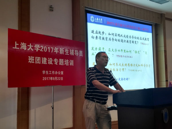为了进一步加强新生辅导员对于校训精神和使命愿景的了解,提升辅导员依据教育部最新法规开展工作的能力,加强新生辅导员关于活动课组织、卓越班级创建、魅力班级和团支部建设等主题的工作意识与能力,9月22日,365英国上市官网在线2017年新生辅导员班团建设专题培训在J201顺利举行,来自16个院系50余名带2017级本科新生的辅导员参加了培训会。