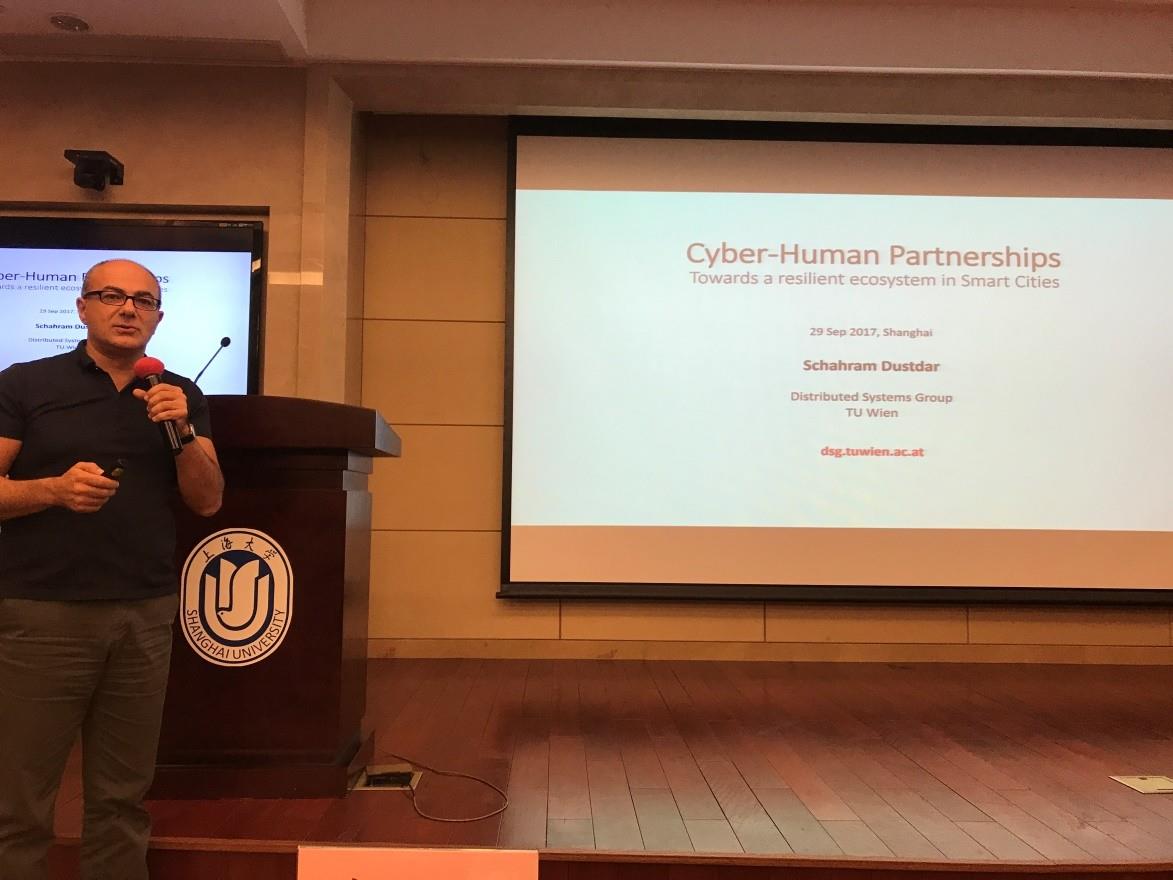 9月29日下午,365英国上市官网在线“海外高端专家引智专项”国际大师讲坛(十一)在宝山校区乐乎新楼学海厅正式开讲。本次主讲专家为欧洲研究院院士、ACM杰出科学家、IEEE Fellow、维也纳科技大学的Schahram Dustdar教授,为全校师生奉献了一场题为“Cyber-Human Partnerships – Towards a Resilient Ecosystem in Smart Cities”(网络与人类的伙伴关系-智慧城市中的弹性生态系统)的精彩讲座。讲座由计算机工程与科学学院的冷拓老师主持,来自365官网计算机、经济、管理学院、复旦、交大以及业界众多相关科技公司如蚂蚁金服、海航集团、中国银联等代表,约120名师生参加了本次讲座。 Schahram Dustdar教授与大家一起探讨了未来十年最为相关的挑战之一:在考虑现代云计算、物联网(IoT)与大数据的基础上,如何将物联网与软件、人员和流程相结合。他以独特而深入的视角揭开了这个问题的崭新一面,并提出我们要如何将人群、软件服务和事物与数据结合在一起,形成一个新的弹性生态系统,进而对该系统以弹性的方式大规模进行建模、编程和部署。 Schahram Dustdar教授特别强调了弹性与生态系统这两个概念。他所建立并介绍的这种新颖的范式将对我们如何查看、构建、设计及部署超大规模分布式系统产生了重大影响,并为驱动“智慧城市”的价值体系建设奠定基础。在他生动的讲座中,在座师生都表示对技术与社会的结合有了新的认识,从宏观层面对智慧城市的概念有了更清晰的定位和了解。 最后,Schahram Dustdar教授与在座听众展开了有趣的互动,针对大家提出的如何定义智能物联网中价值与信任的问题做了巧妙风趣的回答,在座师生都觉得收获满满。 Schahram Dustdar,欧洲研究院院士、维也纳科技大学计算机科学系的教授,也是该校分布式系统团队的负责人。2004年至2010年,任荷兰格罗宁根大学计算科学系的信息系统荣誉教授。2016年12月至2017年1月,任西班牙塞维利亚大学访问教授, 2017年1月至6月间担任加州大学伯克利分校的客座教授。他是IEEE Transactions on the Cloud,IEEE Transactions on Services Computing ACM Transactions on the Web,ACM Transactions on Internet Technology以及IEEE Internet Computing和IEEE Computer的编委会的副主编,他还是Springer出版的Computing刊物的主编,曾荣获ACM杰出科学家(2009年)、IBM教授奖(2012年)和IEEE Fellow (2016年) 。 国际事务处 计算机工程与科学学院 |