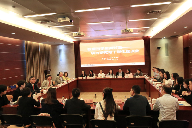10月13日上午,“上大名誉校董助力学校双一流”之与学生面对面座谈会在乐乎新楼思源厅举行,法学院副院长芦雪峰主持座谈会,对外联络处处长许瑞、法学院主持工作副院长李凤章以及法学院20余名本科生及研究生代表参加了座谈会。